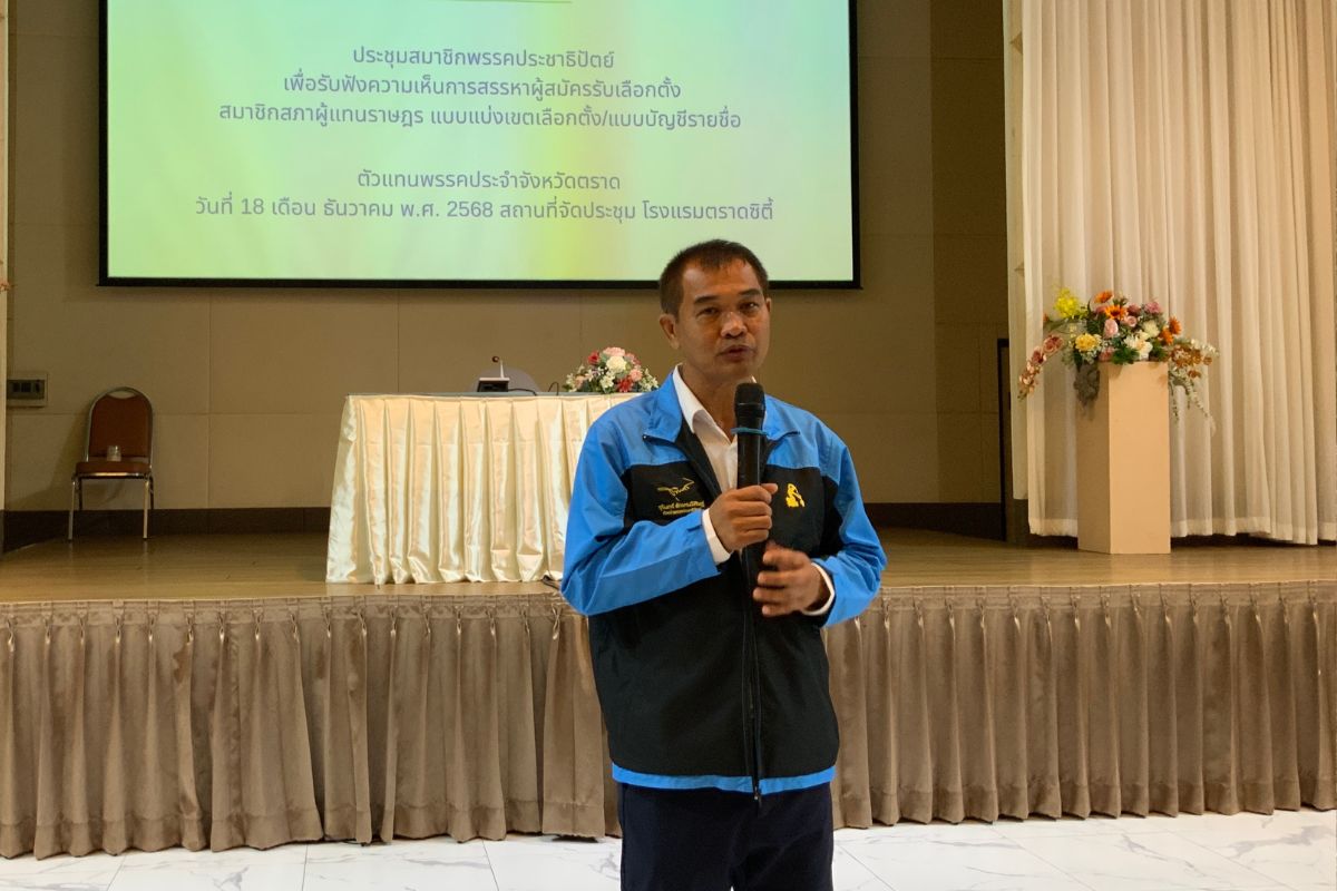มื่อวันที่ 18 ธ.ค.68 ที่ผ่านมา โรงแรมตราดซิตี้ อ.เมือง จ.ตราด พรรคประชาธิปัตย์สาขาจังหวัดตราด ได้จัดประชุมสมาชิกพรรคเพื่อรับฟังความคิดเห็นและสรรหาผู้สมัครรับเลือกตั้งสมาชิกสภาผู้แทนราษฎร (สส.) โดยมีสมาชิกพรรคเข้าร่วม นำโดย นายธีระ สลักเพชร อดีต สส.ตราด 5 สมัย และ นายศักดิ์ชัย เอี่ยมบุญฤทธิ์ ประธานสาขาพรรค