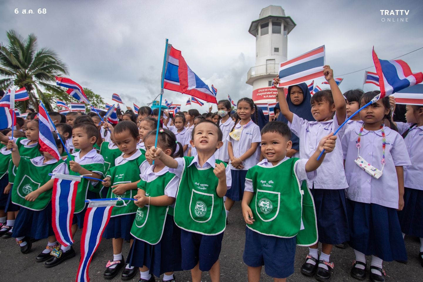 เวลา 09.00 น. วันที่ 6 สิงหาคม 2568 บริเวณประภาคารแหลมงอบ ต.แหลงอบ อ.แหลมงอบ จ.ตราด นายมนตรี ปรีดา นายอำเภอแหลมงอบ นายชัยพฤกษ์ สนธิศิริ นายกเทศมนตรีตำบลแหลมงอบ พร้อมด้วย ข้าราชการ ชาวบ้าน ครู นักเรียน องค์ปกครองส่วนท้องถิ่นในอำเภอแหลมงอบ ทุกเชื้อชาติ ทุกศาสนา กว่า 200 คน รวมตัวแสดงพลังกิจกรรมถือธงไตรรงค์ เพื่อแสดงความรักชาติ ศักดิ์ศรี และความเป็นไทย เป็นแสดงสัญลักษณ์ปกป้องประเทศไทย พร้อมเป็นกำลังใจให้กับทหารแนวหน้า จากความไม่สงบชายแดนไทยกัมพูชา