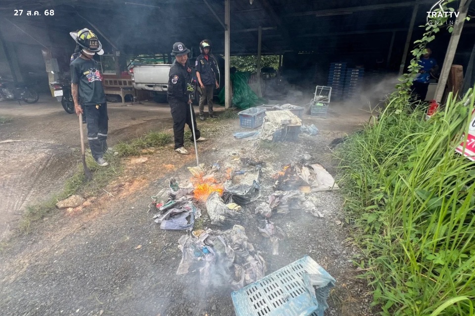 วันที่ 27 สิงหาคม 2568 ที่แผงผลไม้ใกล้เคียงโรงพยาบาลส่งเสริมสุขภาพตำบลท้ายวัง (รพ.สต.ปลายคลอง) ม.4 ต.วังกระแจะ อ.เมือง จ.ตราด ศูนย์รับแจ้งเหตุ 191 ตำรวจภูธรจังหวัดตราด ได้รับแจ้งมีเหตุไฟไหม้ภายในแผงผลไม้ หลังรับแจ้งประสานตำรวจตู้ยามหนองบัวตรวจสอบที่เกิดเหตุ โดยมีกำลังอาสากู้ภัยสว่างบุญช่วยเหลือจังหวัดตราดร่วมสนับสนุนที่เกิดเหตุ